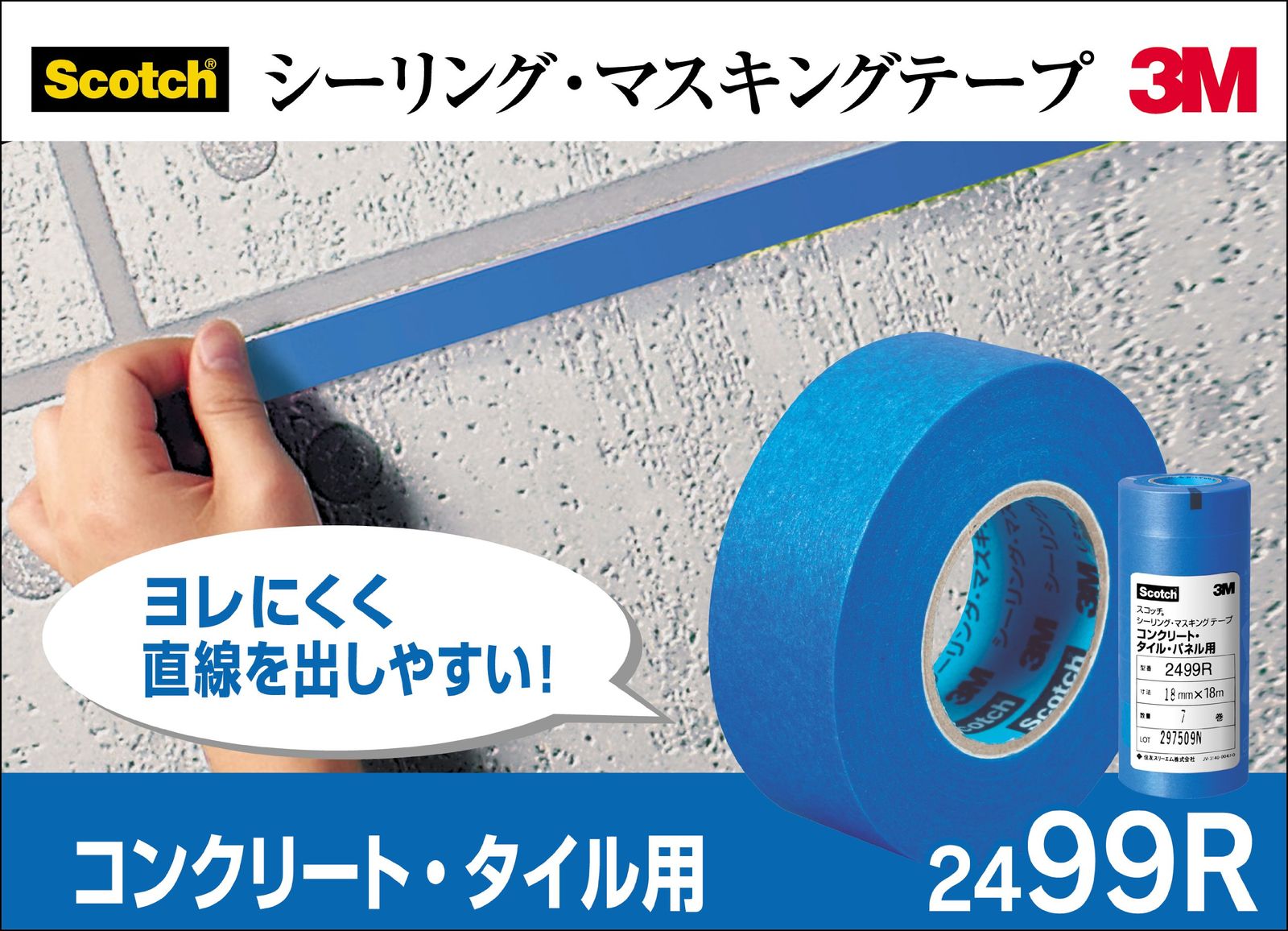 3 Mスコッチシーリングマスキングテープ コンクリート タイル パネル18 m 7巻 2499 BB 18 10
