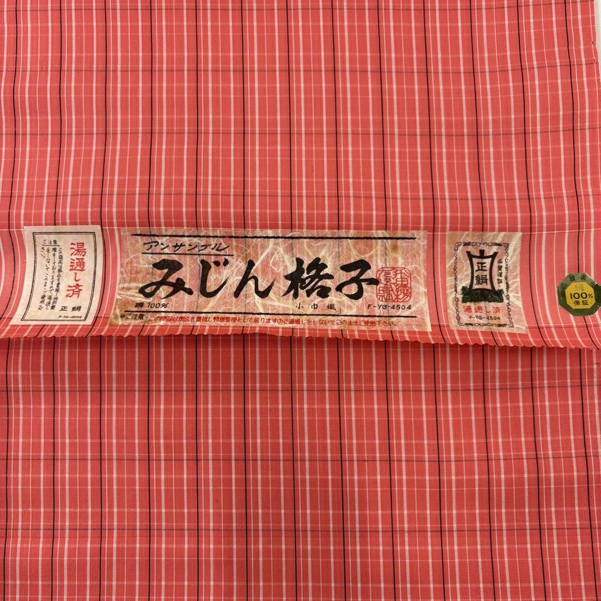 反物 秀品 紬 証紙 格子 サーモンピンク 正絹