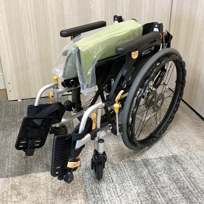 現物写真です C-149 自走型 車いす NEXT-51 B-38 ネクストコア アジャスト 座幅38 cm グリーンメッシュ 品 車イス リサイクル 自走式車いす