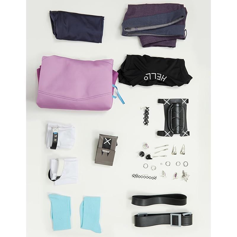 セット内容:水滴型のピン、ピン、蝶ピアス、ピアス、ネックストラップ、ジャケット、インナー、ワイドベルト、ウエストバッグ、腕輪、ブレスレット、袖、半ズボン、パンティソックス、ソックス、ひざ当て、悪魔風ヘアピン、指輪(6個)