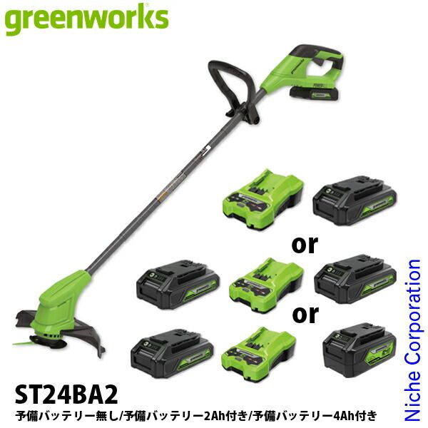 グリーンワークス バッテリー 草刈機 充電器付き ST 24 BA 2-SET 予備バッテリー無し