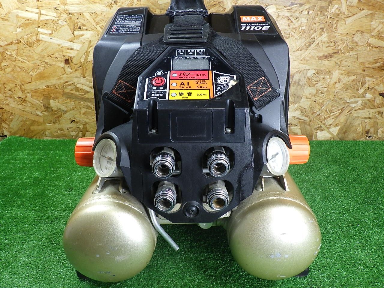 満タンまで約3分40秒 MAX 高圧エアコンプレッサ AK HH 1110 E 高圧 4口 シール剥がれあり 持ち運び楽 品
