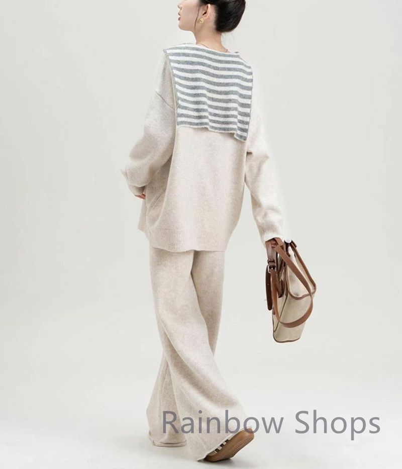 ニット セットアップ レディース 秋冬 春 カジュアル 大きいサイズ ニットセットアップ ニットセーター プルオーバー バイ ワイドパンツ ニットベスト 長袖 ゆったりc 31