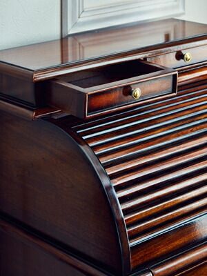 コンパクトサイズのビューローです。手間を掛けた小さい引出しが更に高級感もあり、上品です。インテリアにも役立ちます!