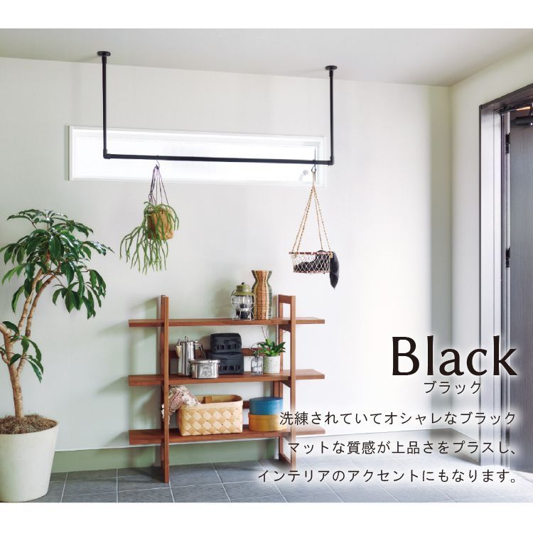 天井近くにハンギングバーを設置すれば、長さのあるグリーンやモビール、インテリア小物などをディスプレイすることができます。