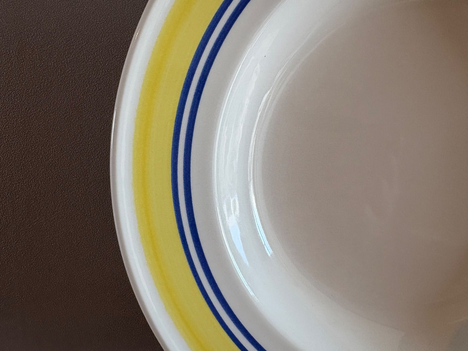 黄色と青のラインがアクセントになったポップで爽やかなデザインは、料理を引き立てるだけでなく、テーブルコーディネートのポイントにも。