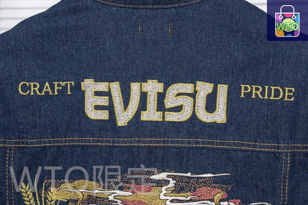 EVISU メンズ デニムジャケット 双狛犬刺繍 ウォッシュ加工 M-2 XL -WTO輸入1