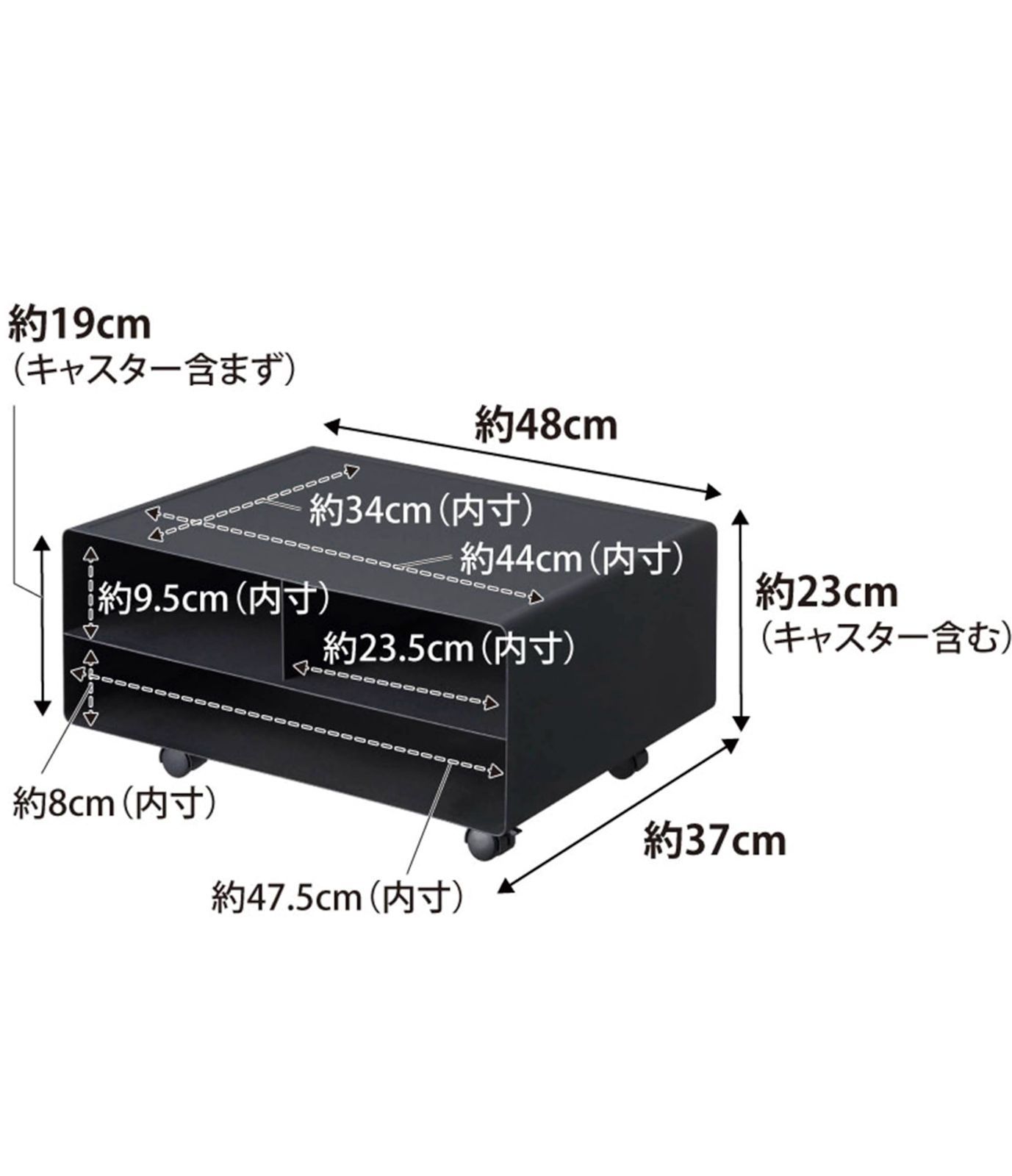 A4プリンターがすっきり収まる便利なプリンターラック。 キャビネット上などで使用する場合はキャスター無しで置いて使用できます。