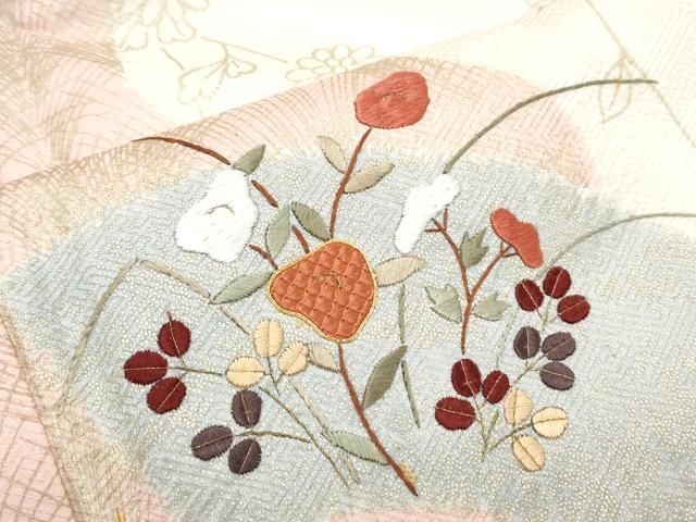 平和屋着物 訪問着 駒刺繍 絞り 地紙草花文 金彩 正絹 th
