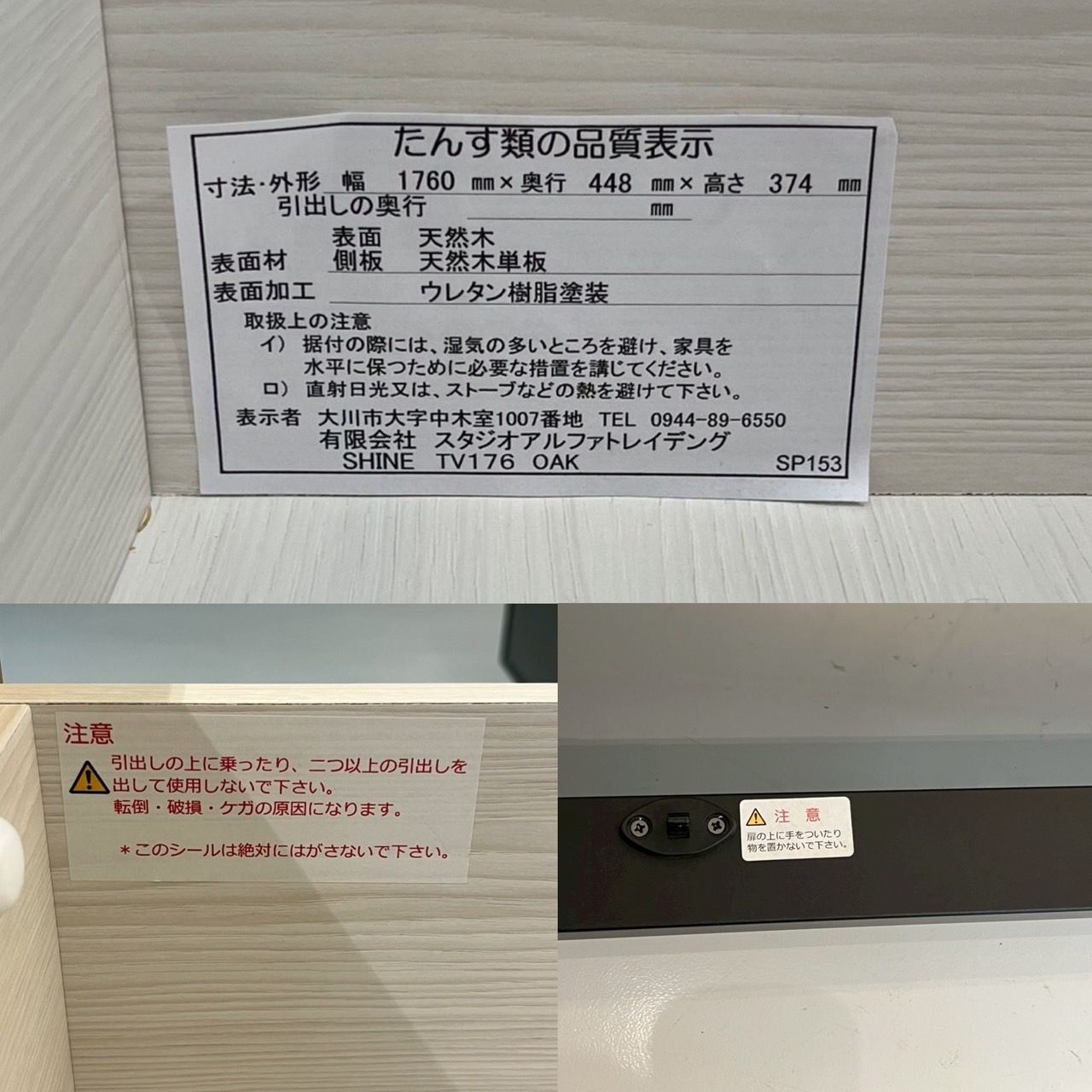 オーク材のナチュラルな質感が魅力で、幅176cmのワイドサイズながら圧迫感を与えないシンプルなフォルムが特徴です。