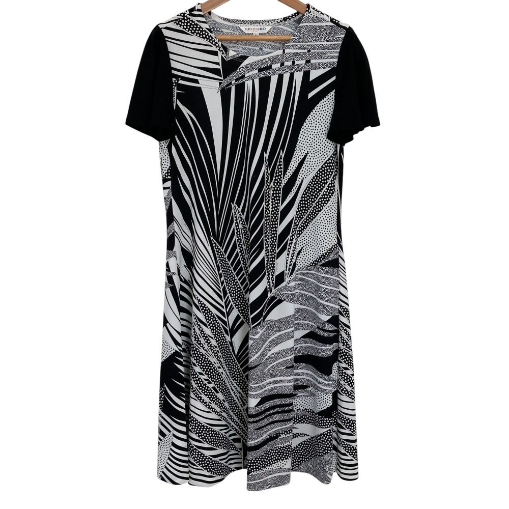 LEONARD SPORT レオナールスポーツ バイ リーフプリント ワンピース サイズ38 ブラック ホワイト レディース 古着