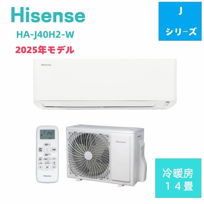 HA-J 40 H 2 エアコン 14畳 ハイセンス Hisense 2-W ルームエアコン 主に14畳用 単相200 V ホワイト クーラー 冷房 暖房 内部クリーン 潤滑親水性コーティング モデル