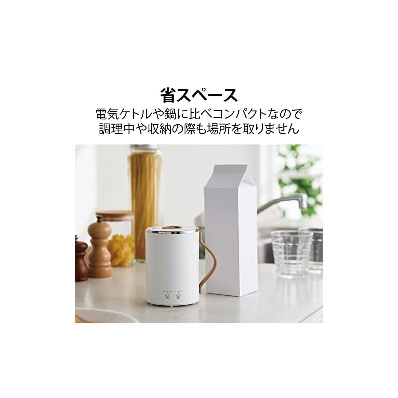 エレコム マグカップ型電気なべ 電気ケトル 350 mL Cook Mug クックマグ 湯沸かし 煮込み 温度調節 タイマー付き 保温 スープメーカー ケーブル長 1.5 m ホワイト HAC-EP 02 WH 1