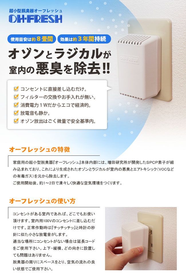 オーフレッシュ 室内用脱臭器 OH-FRESH 100 オゾン脱臭機 小型 脱臭機 オゾン 発生器 部屋 ペット 猫 ミニ 脱臭器 玄関