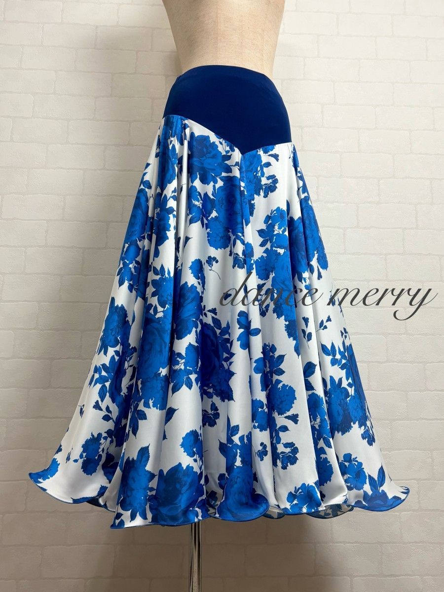 MERRY フ ー最大 パソドブレ パソ ワルツ 社交ダンス スカート 青 白 4705