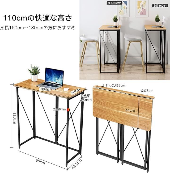 Yesotas 折りたたみデスク スタンディングデスク 幅100 x奥行50 x高さ110 cm PCデスク在宅勤務 オーク 折りたたみ