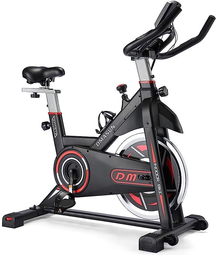 DMASUN エアロバイク 家庭用 静音スピンバイク フィットネスバイク マグネット式 無段階調整 サドル ハンドル調節 本格的トレーニング エクササイズマシン ブラックーレッド DM-1