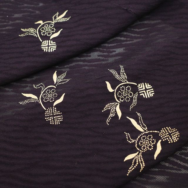 着物衿 コート リサイクル 単衣 紋紗 正絹 紫紺色 濃紫色 印伝 印傳 笹蔓 カジュアル 春 夏 秋 スリーシーズン 着物衿コート 仕立て上がり 身丈107 裄丈66.5 M~Lサイズ 透け感 ハオリモノ みやがわ sb 16423