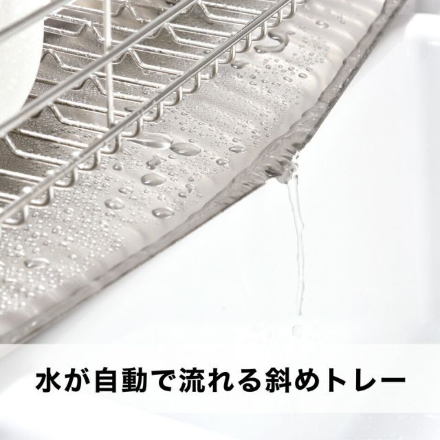 ・傾斜と排水口が水がよりスッキリと流れるように考えられた水受けトレーです。