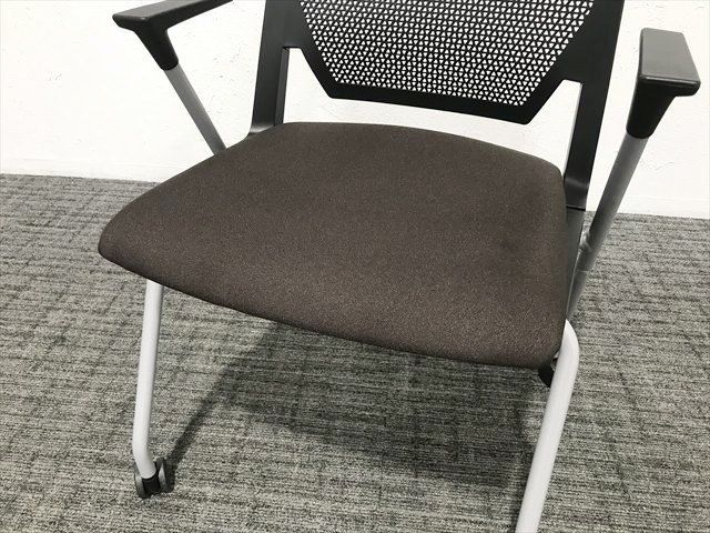スタッキングチェア 肘付 セミナーチェア キャスター付 HAWORTH ヘイワース ブラック ブラウン