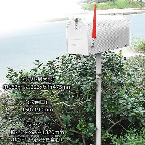 【サイズ】(ポスト最大部)巾163x高さ223x奥行475mm (投函口)150x190mm (スタンド)直径約4x高さ1320mm(地下埋め部分を含む)