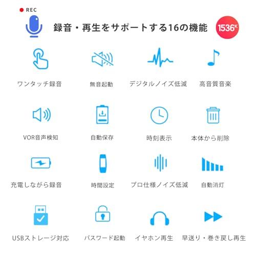 【多機能一覧】一般的な録音だけでなく、多様な使い方が可能です。「タイマー録音」:録音の開始時間と終了時間を事前設定できる。「分割録音」:一定時間ごとにファイルを自動保存する、録音ファイルは時間で管理され、整理も簡単。[音楽プレイヤー]:音楽を楽しむ。[電子書籍(TXT形式)閲覧]:電子書籍を読む。[アルバム機能]:お気に入りの写真を保存し、いつでもお楽しむ。[パスワードロック対応]:起動時にパスワードを設定可能で、大切な録音ファイルをしっかり保護。