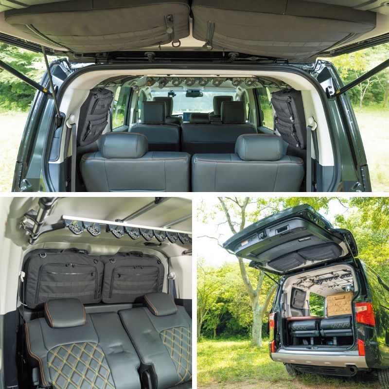 SHINOBI プラス空間 デリカ D 5 ブラインドラゲッジ サイド リア ウィンドウ サンシェード 車 収納 目隠し アウトドア 車中泊 ツールボックス 収納ボックス 内装 カスタム キャンプ ソロキャンプ バンキャンプ グッズ デリカd