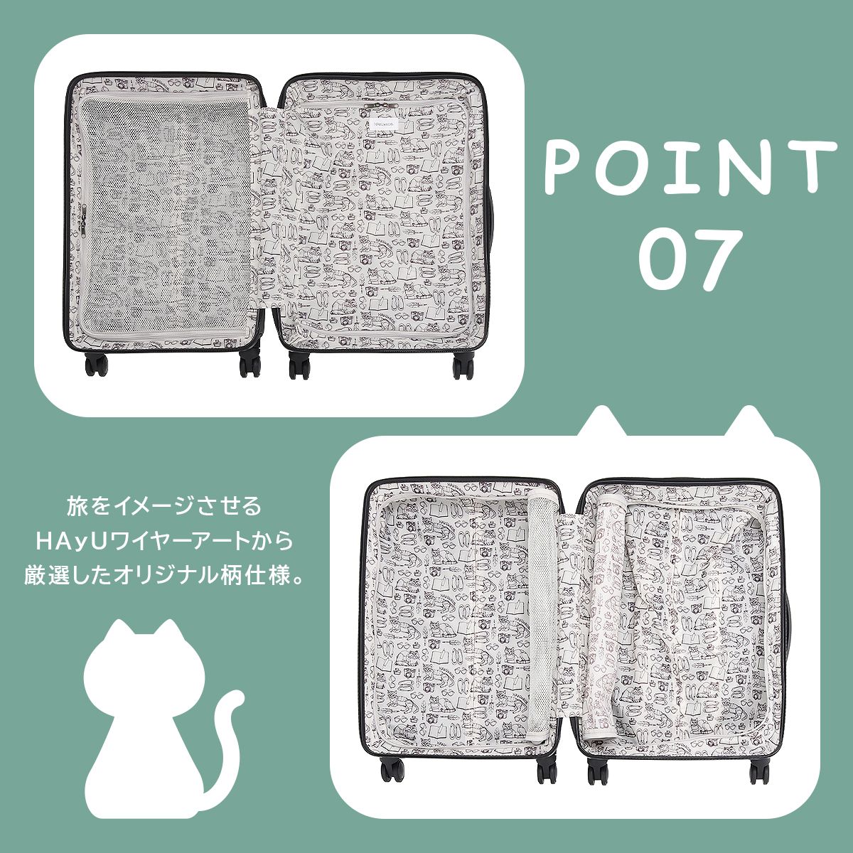 ・内装柄は、旅をイメージさせるHAyUのワイヤーアートから厳選。