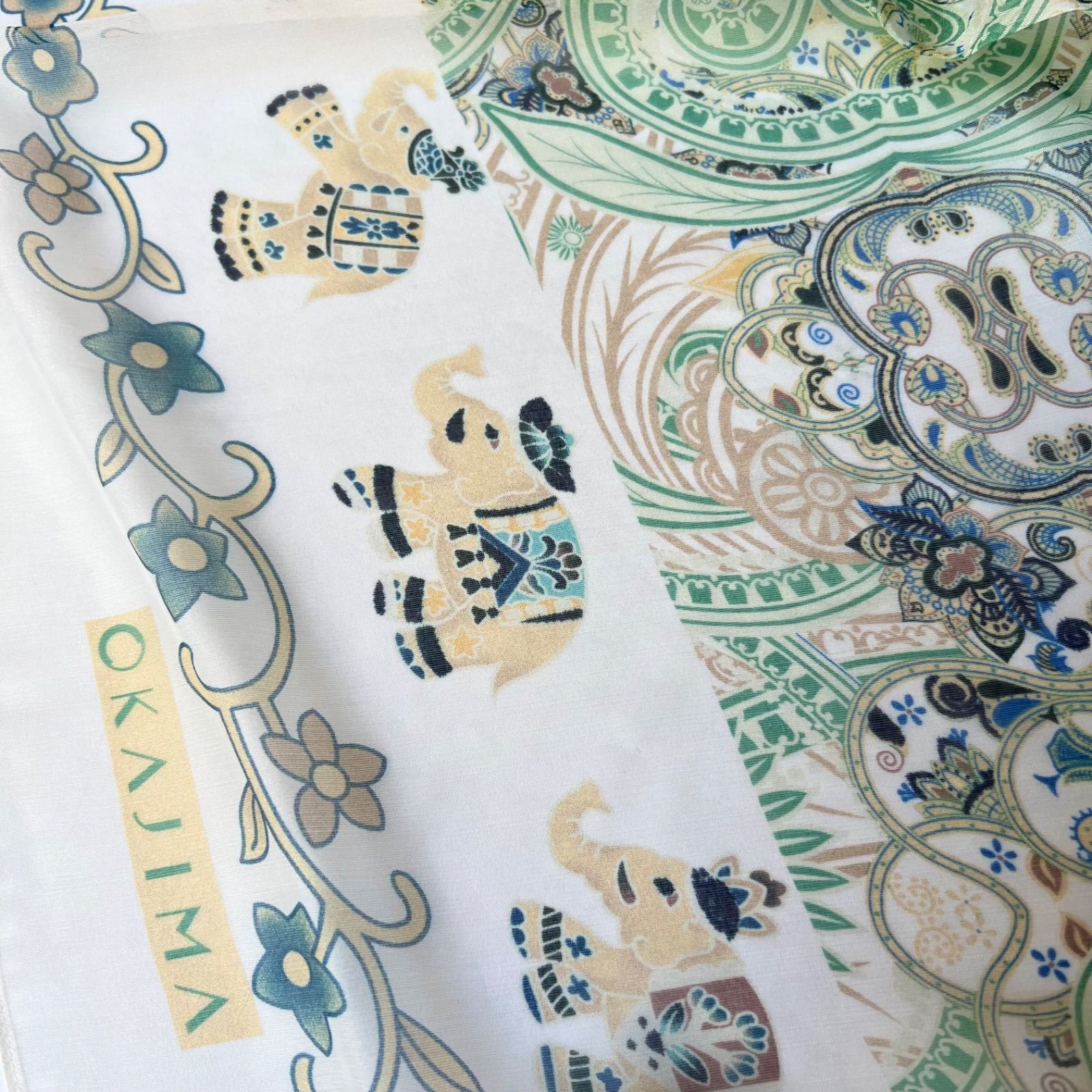 岡重 京都 ショール ストール シルク 絹 薄手 シアー 象 ホワイト グリーン 着物ショール
