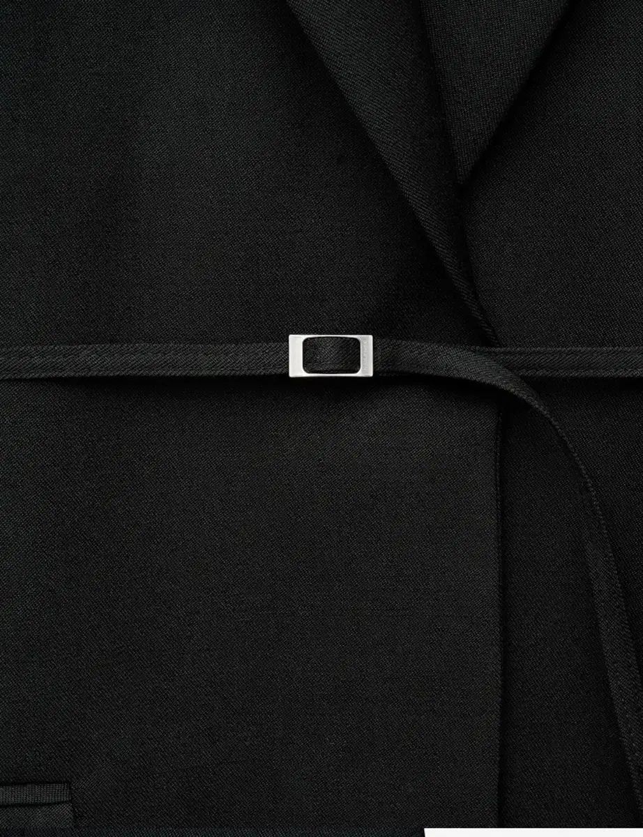 これは新品のグリーティング女性用ブラックブレザーです。取り外し可能なベルトのディテールにより、さまざまなスタイルが可能です。すっきりとしたデザインはフォーマルなシーンにもぴったりです。他に質問がない場合は、すぐに安全な支払いを行ってください!