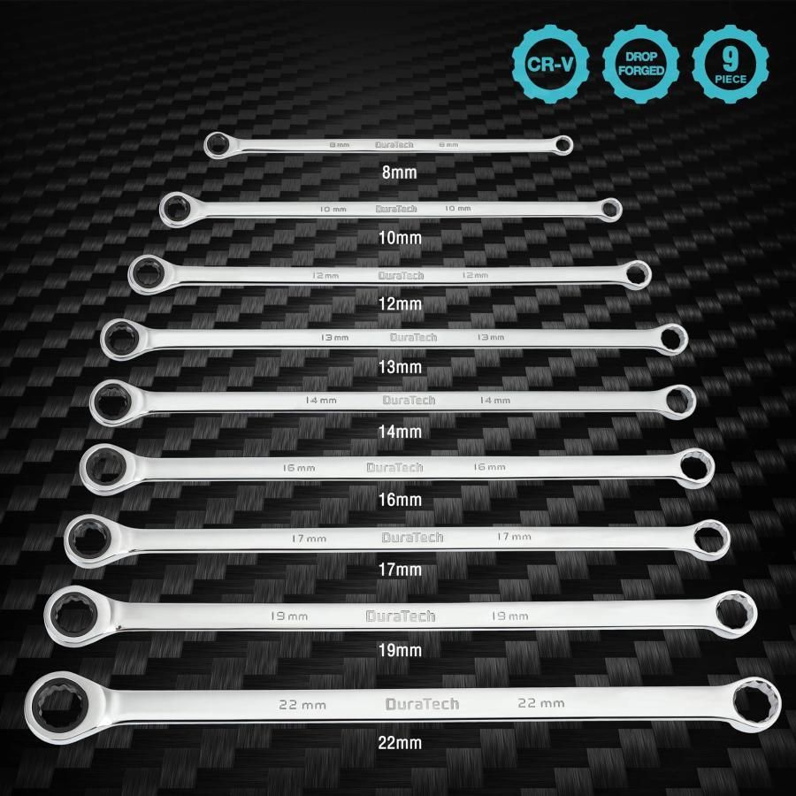 メガネレンチセット 板ラチェットレンチ ロングタイプ ミリサイズ 片側ラチェット構造 72ギア ミラー仕上げ 8~22 mm 収納ケ