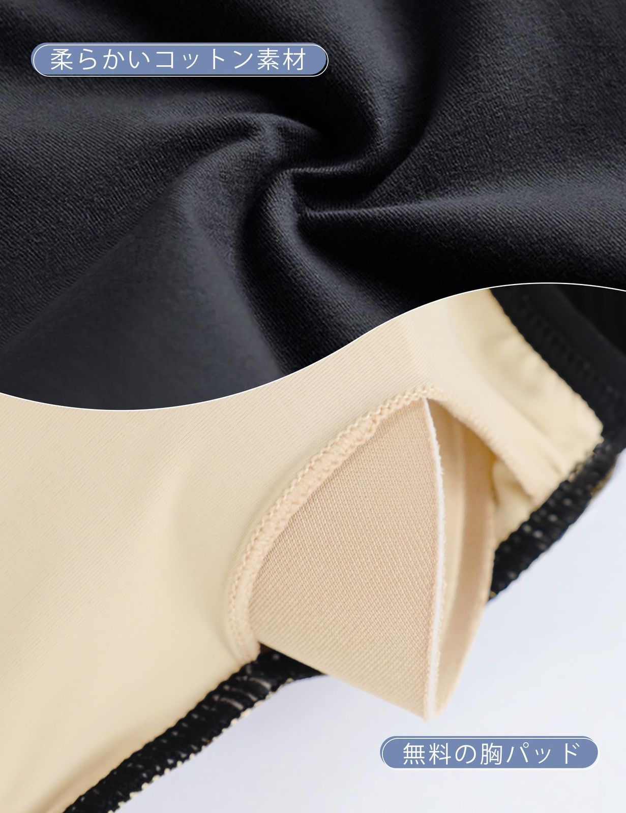 【特徴】裏地付き、胸パッド、シンプルなラウンドネック、ディープUローバック、クローズド。