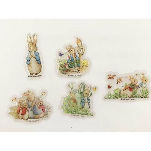 ピーターラビット柄ぷっくり箔入り素材のシールです。ピーターラビットのかわいいアイコンが5柄、各5枚入り。