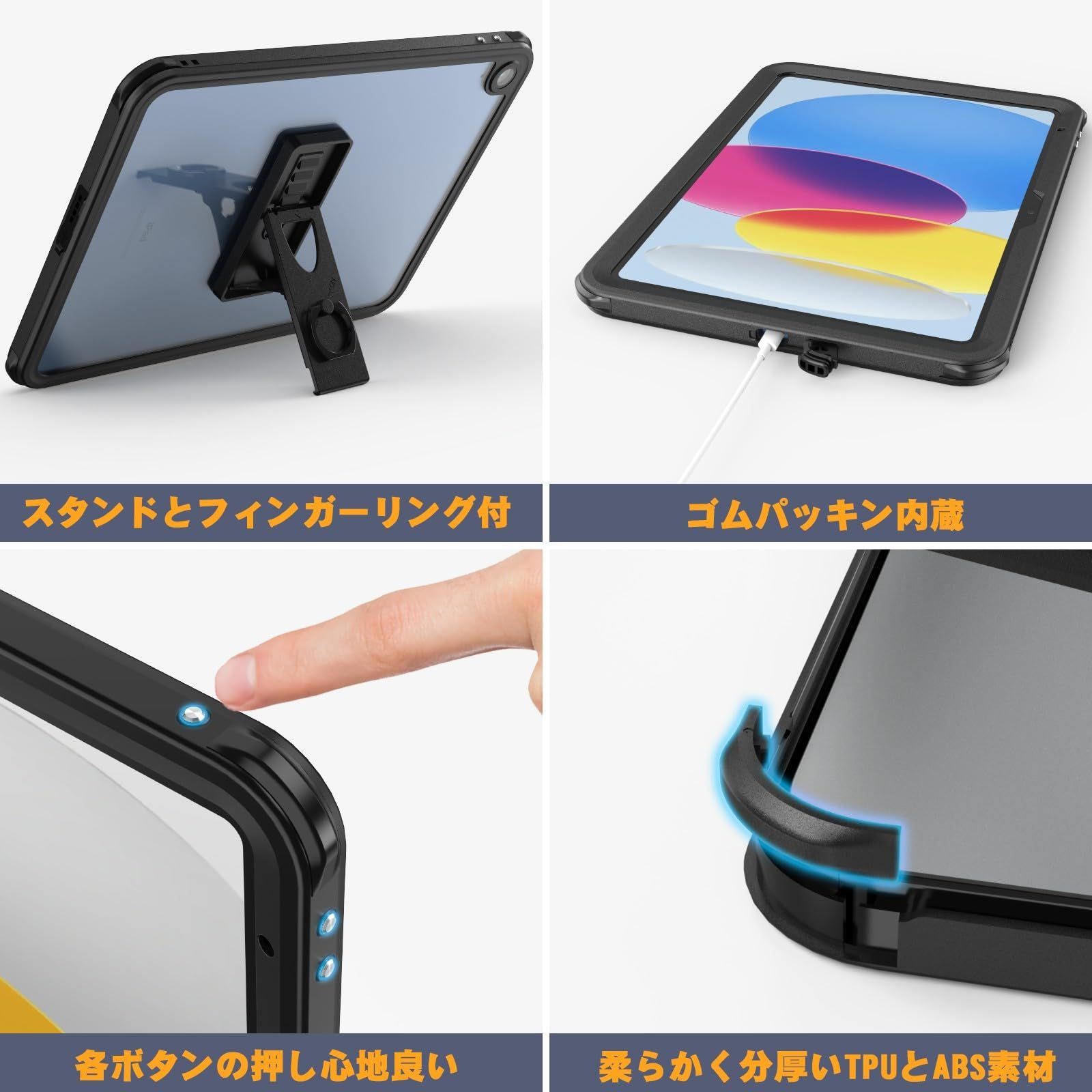 iPad11世代 (A16) 防水ケース iPad 第10世代 / 第11世代 専用ケース (2022/2025モデル) 防水ケース IP68防水 防塵 衝撃吸収 キックスタンド ショルダーストラップ プール お風呂 キッチン アウトドア 作業場所等適用 11インチ/10.9インチ対応