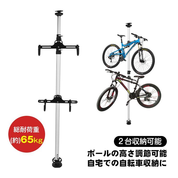 自転車ラック サイクルスタンド 自転車 スタンド 2台収納 自転車用ディスプレイスタンド 狭いスペース 収納 省スペース 高さ調整 つっぱり式 超大型 zk 077