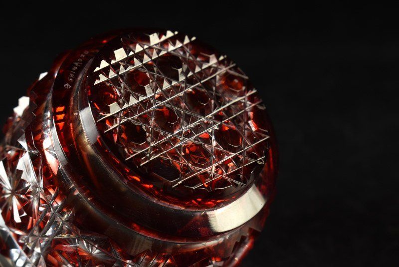蔵A 3500 b 尚古集成館監修 薩摩ガラス工芸 復元薩摩切子 色被せガラス切子猪口 共箱共布