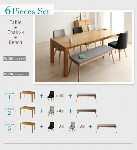 ダイニングセット 4点セット テーブルW 150 チェア×2 ベンチ チェア2脚 ダークグレー グレー Fier 北欧デザインエクステンションダイニング フィーア