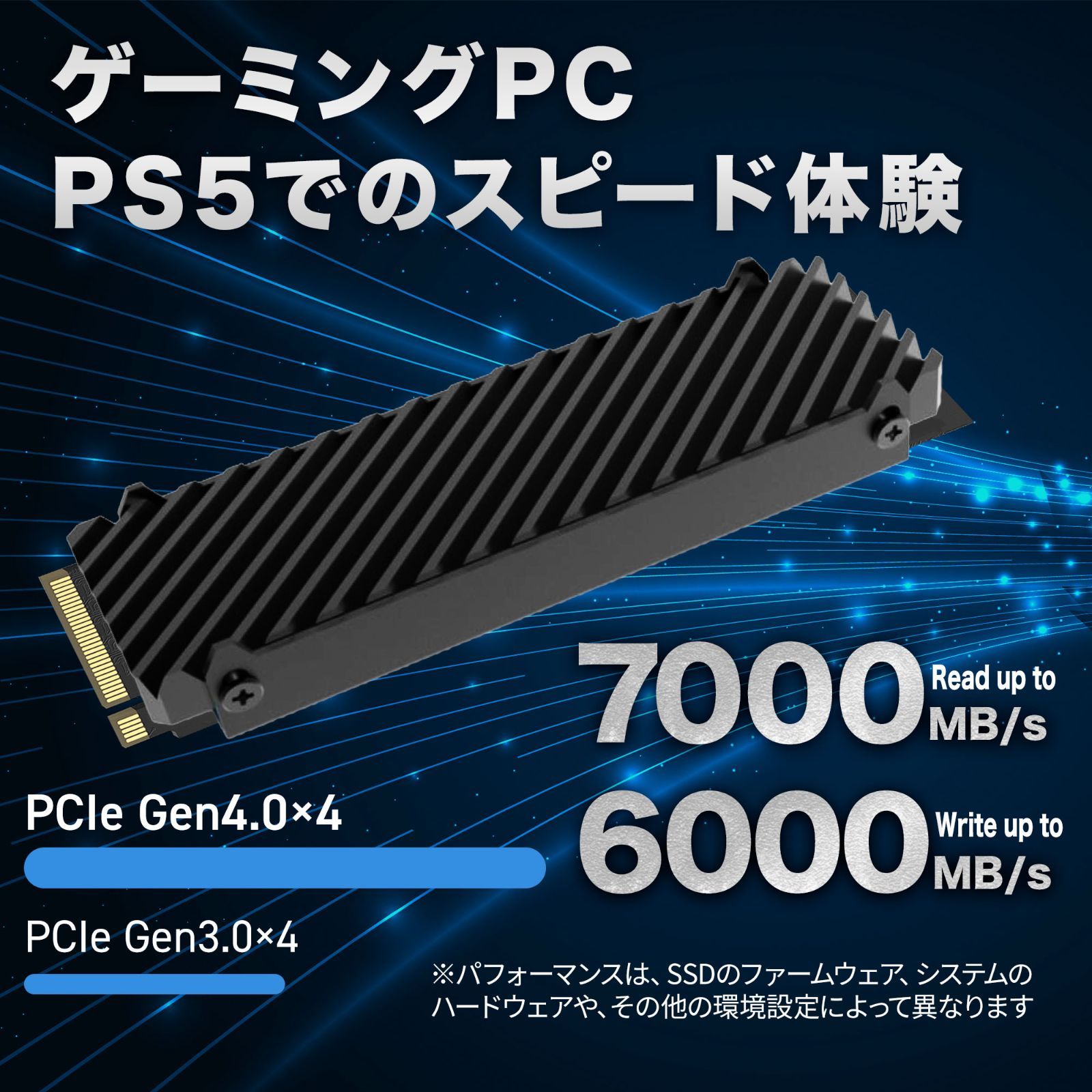 ・【最大転送速度】読み込み:7,000MB/s、書き込み:6,000MB/s ※注意:使用環境により最大書き込み速度出ない可能性があります。