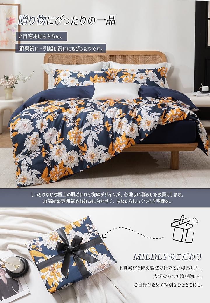 「デザイン性で変わる寝室空間」 MILDLYデザイナーチーム開発のオリジナル花柄が、寝室をベッドカバー おしゃれな空間に進化させます。