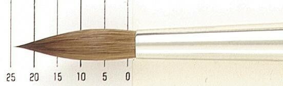穂先は水を含むと膨張し、大量の絵具を含みます。そしてその絵具を意のままに好みの量をコントロールしながら描く感覚はまさに水彩画筆の極みといえるでしょう。110シリーズはより細く、細かな表現ができるよう穂先形状をシャープな形状にしています。