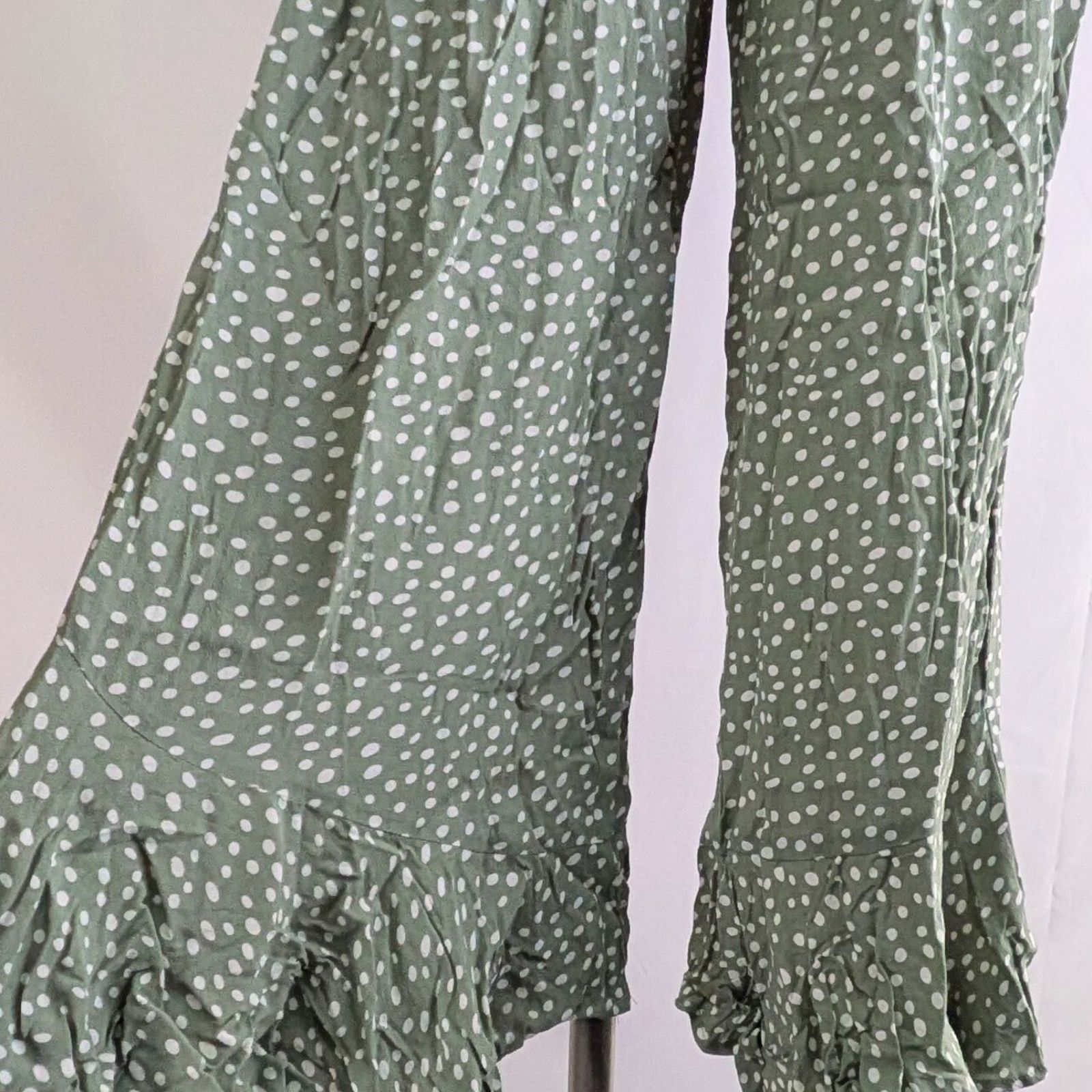 未着用 KIVARI ノースリーブオールインワンワイドパンツドレス ドット柄 グリーン Sサイズ レディース キバリ